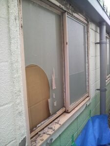 名古屋市西区のお客様スリガラス3ミリ、パテケレン、コーキング施工