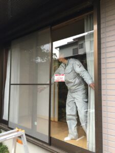 北名古屋市のお客様からドアガラス割れ替え修理をご依頼いただきました。 台風による暴風で扉が風で煽られ衝撃で破損したようです。網入りガラスなので飛び散らず枠に残っております。今回は暴風の為修理できませんので養生をし後日修理 […]