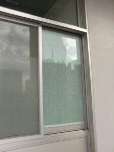 名古屋市西区のお客様窓ガラス割れ替え修理強化ガラス5ミリ透明コーキング施工 目隠しフィルム別途