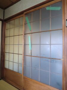 名古屋市西区のお客様木製引戸のガラス割れ替え修理スリガラス2ミリ