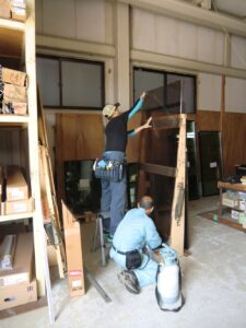 名古屋市西区のお客様木製引戸のガラス割れ替え修理スリガラス2ミリ