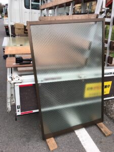 瑞穂区のお客様よりガラスから樹脂板へ交換したいとのご依頼で、ガラス3段(9枚)のうち中段・下段の6枚を浴室中折れ戸等に使われる樹脂板へ交換させていただきました。 ポリスチレン樹脂板2ミリ726ミリ×610ミリ(6枚) 作 […]
