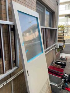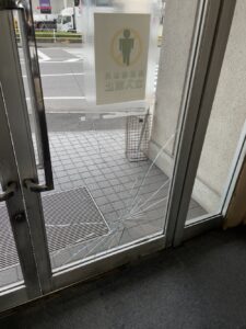 名古屋市西区の店舗オーナー様お店出入口ドアのガラス修理のご依頼をいただきました。この度はご依頼いただきまして誠にありがとうございました。