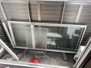 名古屋市名東区透明3ミリ+A6+透明3ミリ885×1536 (1枚)この他に浴室引違い窓の内部結露したペアガラスも交換させていただきました。
