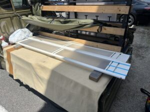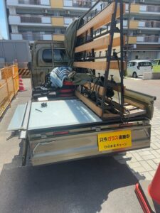 名古屋市北区引違い窓サッシのガラス修理に伺いました。スリガラス3㎜切断風景