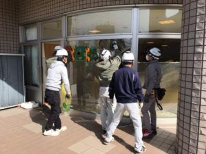 名古屋市西区にてガラス修理に伺った際に雨天でしたのでシートをテントにしてガラスを切断します。2トントラック限定となりますので現地駐車可能の場合になります。豪雨、暴風雨時は申し訳ございませんが日を改めさせていただいておりま […]