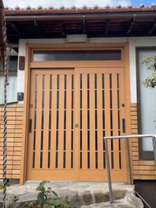 名古屋市西区のお客様から玄関引戸のリフォームをご依頼いただきました。 こちらではトステムのリシェント玄関引戸2を使用しカバー工法で取り付けさせていただきました。