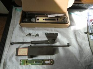 玄関ドア(トステム)のクローザー交換です。NHN(ニッカナ)は廃業しましたので代替品での対応になります。 メーカー(トステム)から取り寄せて無事交換できました。