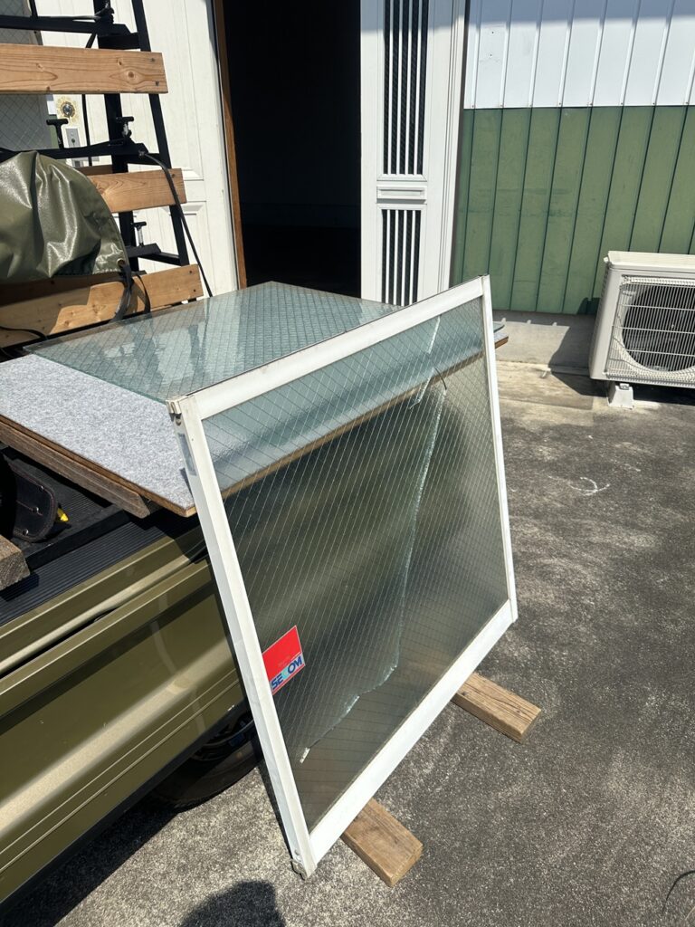 引違い窓ガラス修理 2025年7月31日 最終更新日時 : 2025年11月23日 garasu110 修理・施工事例のカテゴリーガラス修理 名古屋市緑区網入り6.8ミリ現地にてガラス切断修理 施工前 施工後