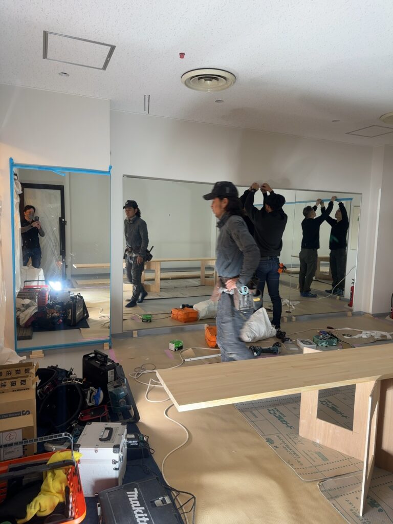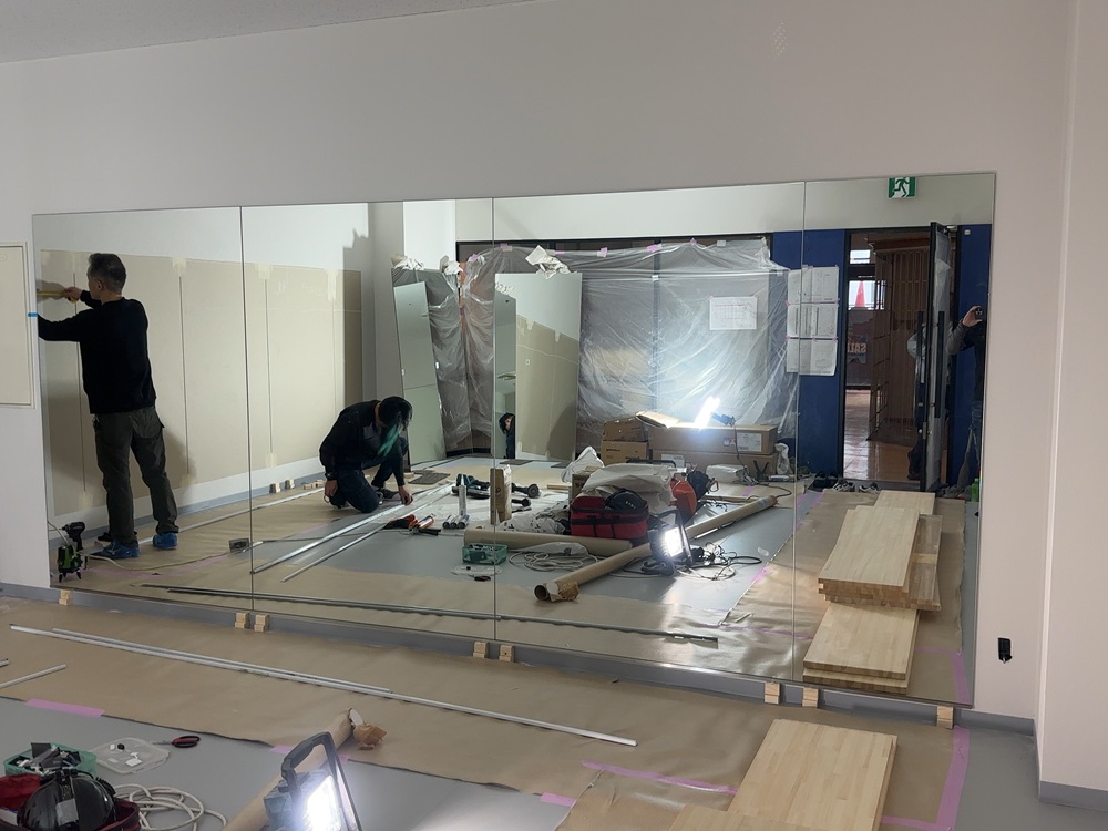 鏡貼り工事 2025年3月31日 最終更新日時 : 2025年11月23日 garasu110 修理・施工事例のカテゴリー鏡取り付け・交換 名古屋市鏡連貼りA壁 1200×1800 (3枚)+600×1800(1枚)B壁 1200×1800 (3枚)C壁 900×1800 (1枚) A壁 A壁 B・C壁