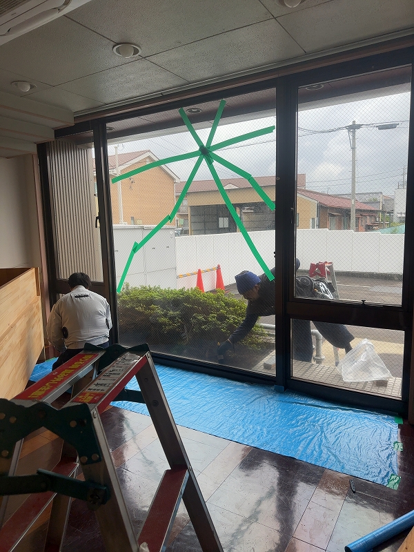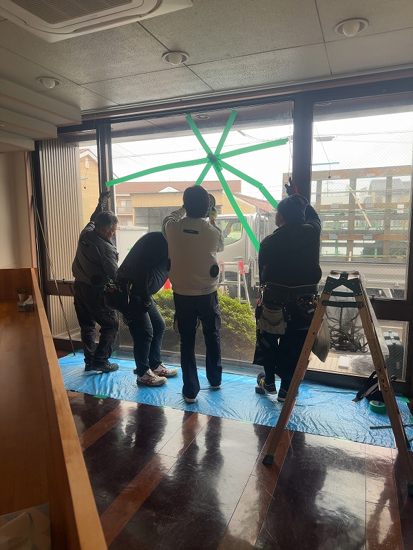 大板ガラス修理 2024年10月31日 最終更新日時 : 2025年11月27日 garasu110 修理・施工事例のカテゴリーガラス修理 FIXガラス割れ替え網入り6.8ミリ1865 × 2363 (1枚) 施工前 施工中