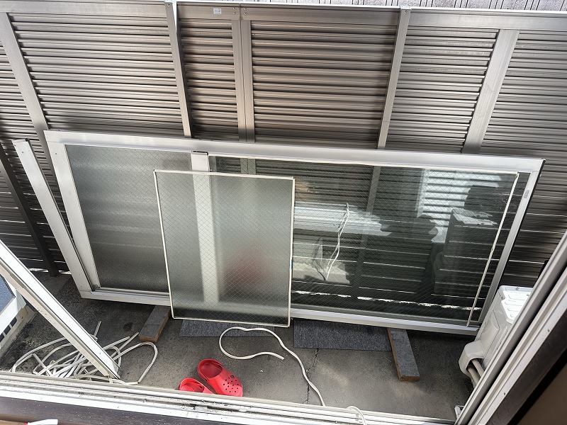 建物を管理されている方からの依頼で引違いサッシのガラス巻きゴムを交換させていただきました。