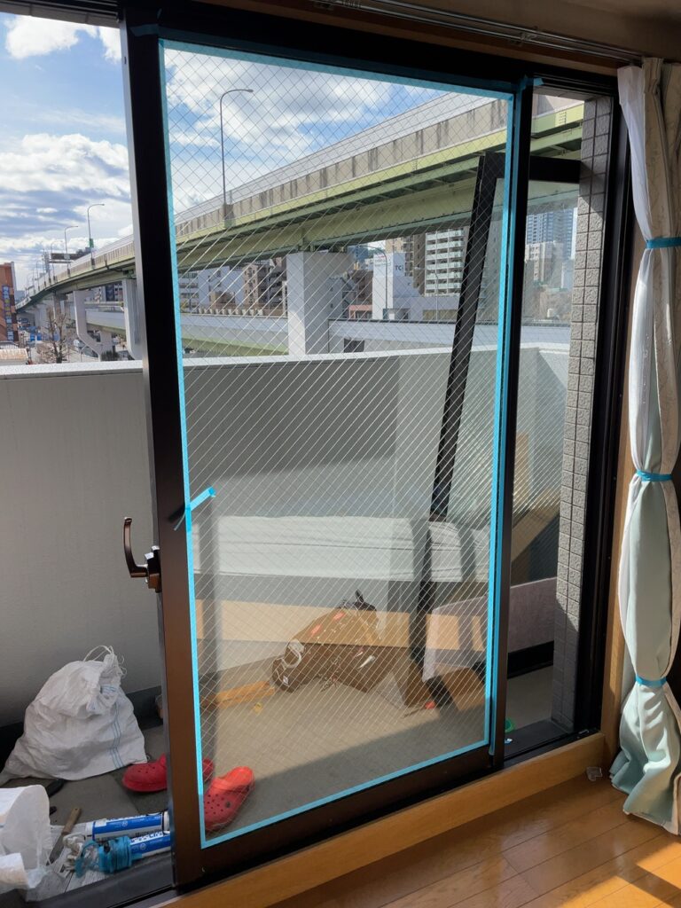 掃出し引き違いサッシガラス修理 2023年2月28日 最終更新日時 : 2025年11月28日 garasu110 修理・施工事例のカテゴリーガラス修理 網入り透明6.8ミリヒシワイヤコーキング施工 施工前 コーキング施工中