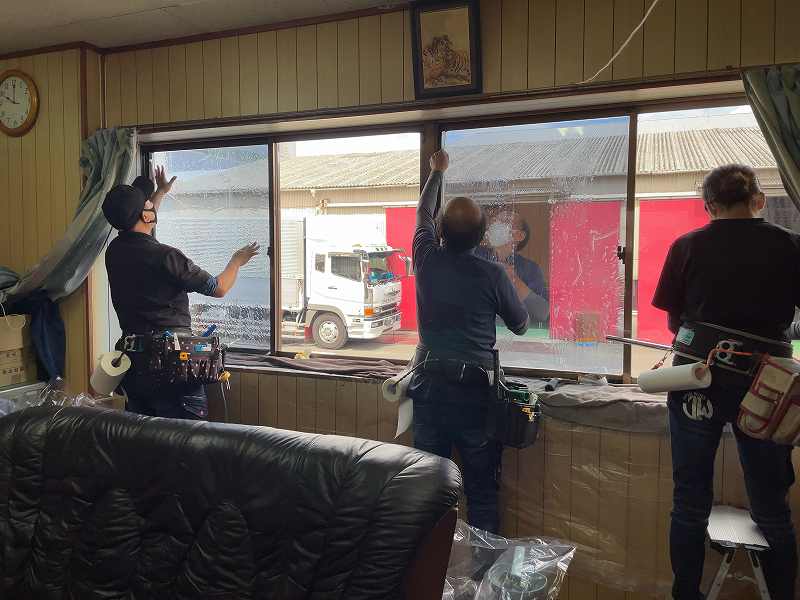 窓ガラス遮熱対策 2022年7月31日 最終更新日時 : 2025年11月28日 garasu110 修理・施工事例のカテゴリーガラス修理 名古屋市西区の会社様事務所へ窓ガラスフィルムの施工をさせていただきました。今回は夏の西日対策でしたので遮熱フィルムを提案させていただきました。