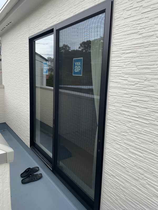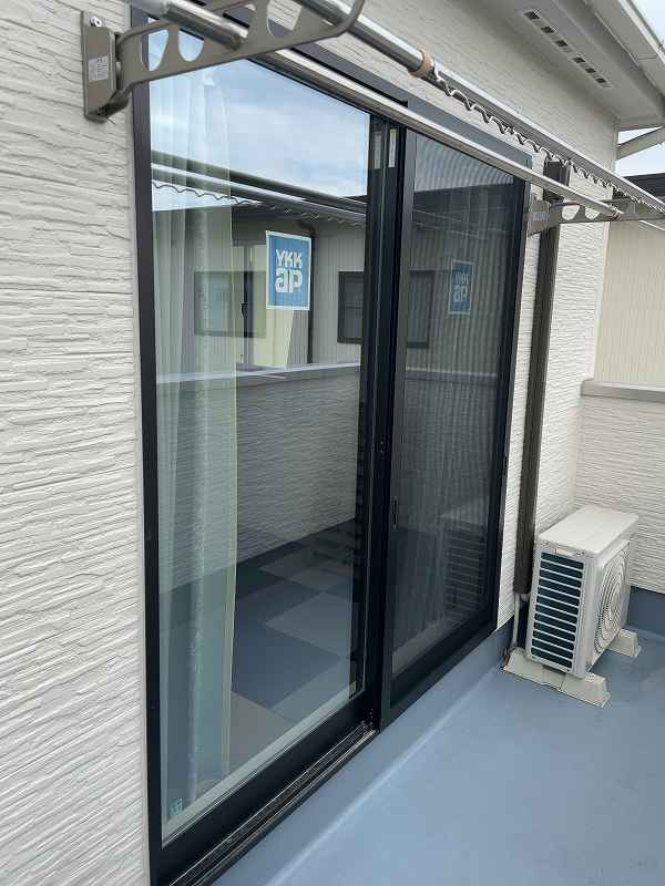 YKKのLow-EペアガラスからYKK防犯Low-Eペアガラスへ掃出し引違い4箇所、引違い窓1箇所、縦辷り出し窓1箇所の計11枚交換させていただきました。