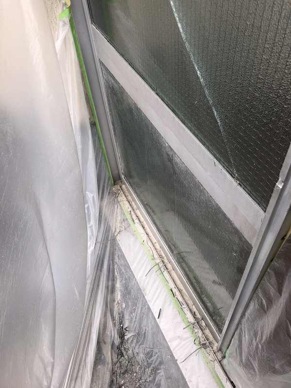 上部ガラスは一度修理されておりコーキング施工ですが、下部はパテがしっかり入っております。