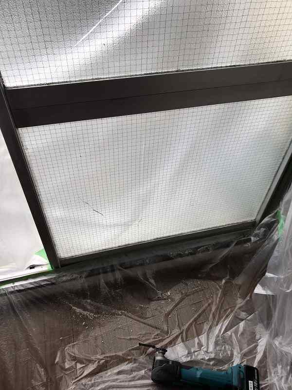 内障子の上下2枚(網入り型クロス6.8ミリ)の割れ替えです。