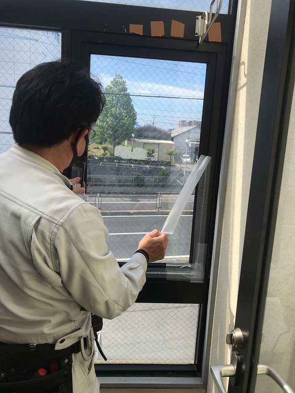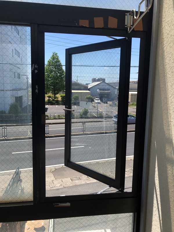 縦辷り出し窓の障子が落下しそうなので修理またはサッシを交換したいとのご相談をいただきました。
