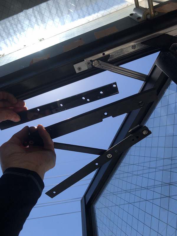 25年以上前のトステムのフロントサッシですが写真ステー部品の障子を支える重要な部分が上下共破損したのが原因です。