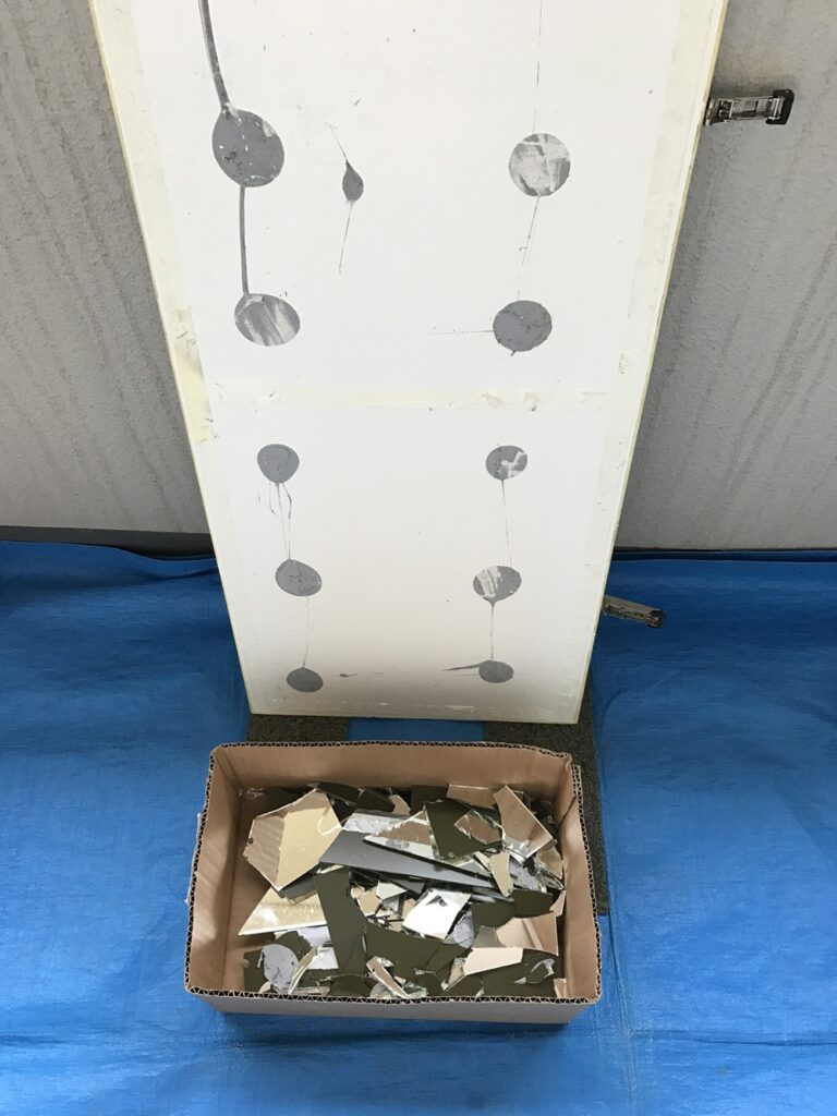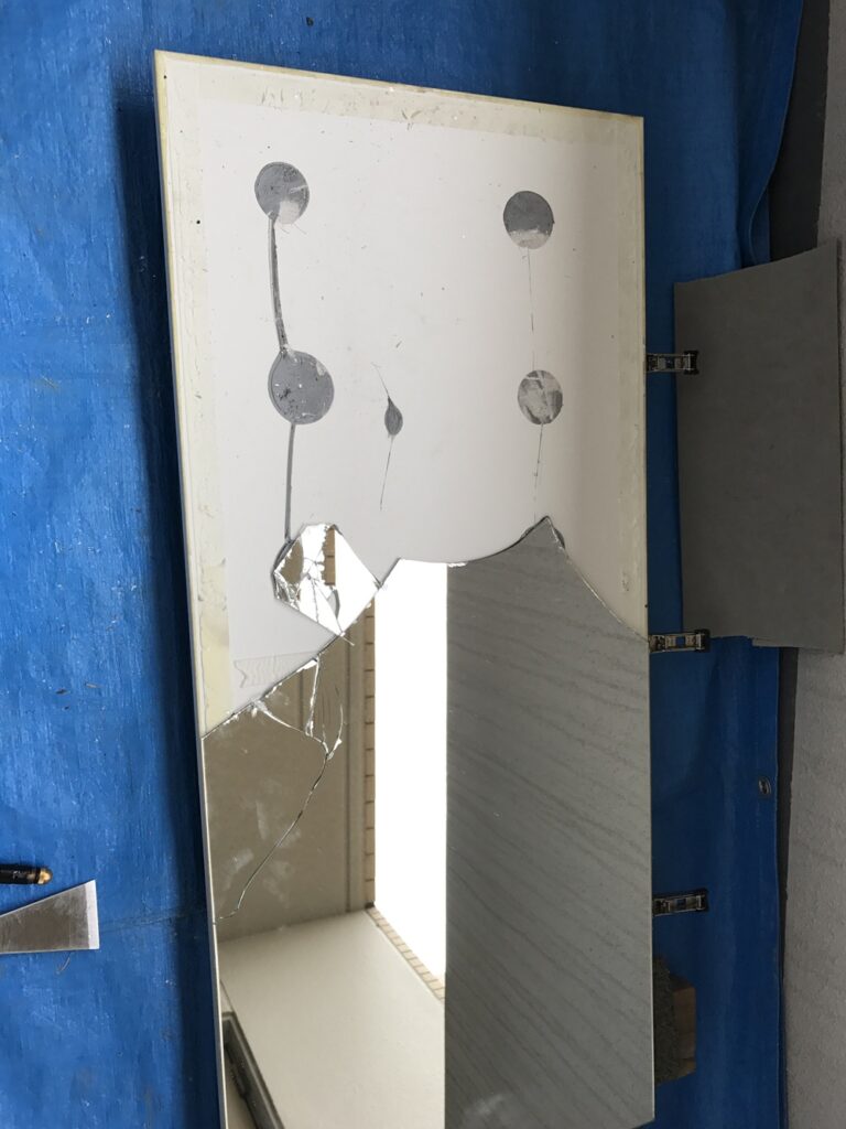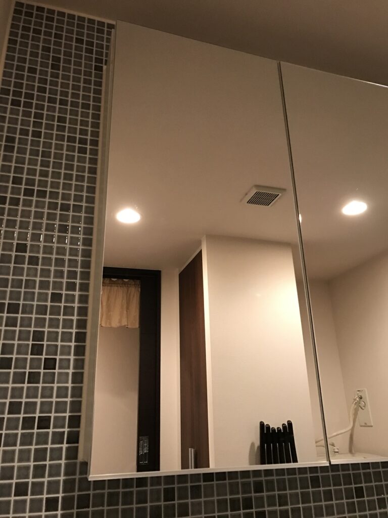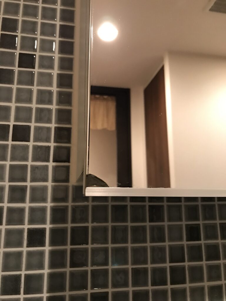 名古屋市東区にお住いのお客様より洗面化粧家具扉に取付けされた鏡交換のご依頼をいただきました。