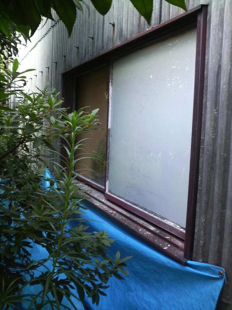 スチールサッシガラス割れ替え修理