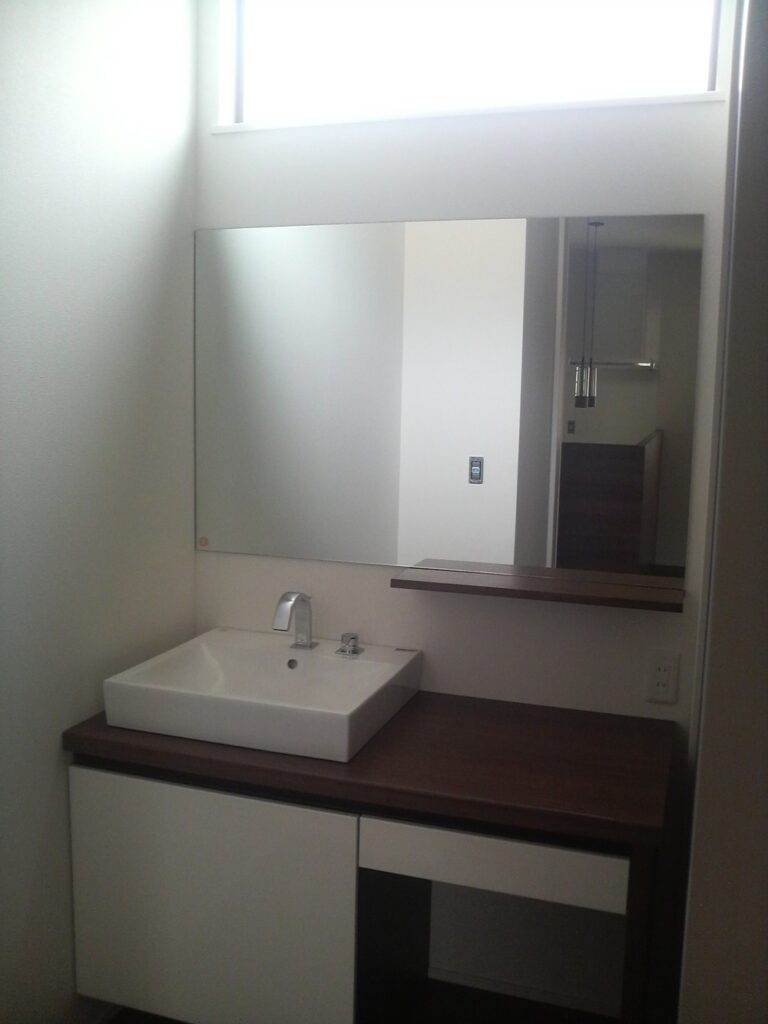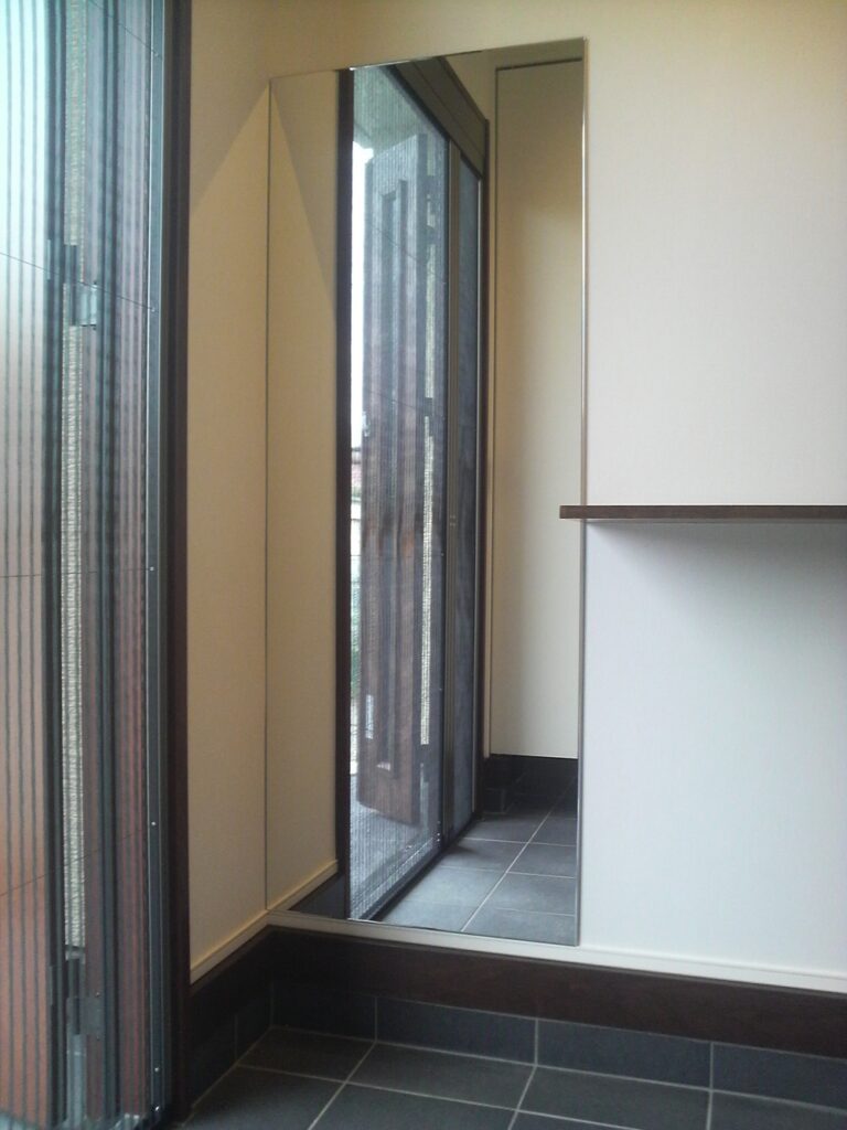 新築現場 玄関姿見と洗面鏡を設置させていただきました。