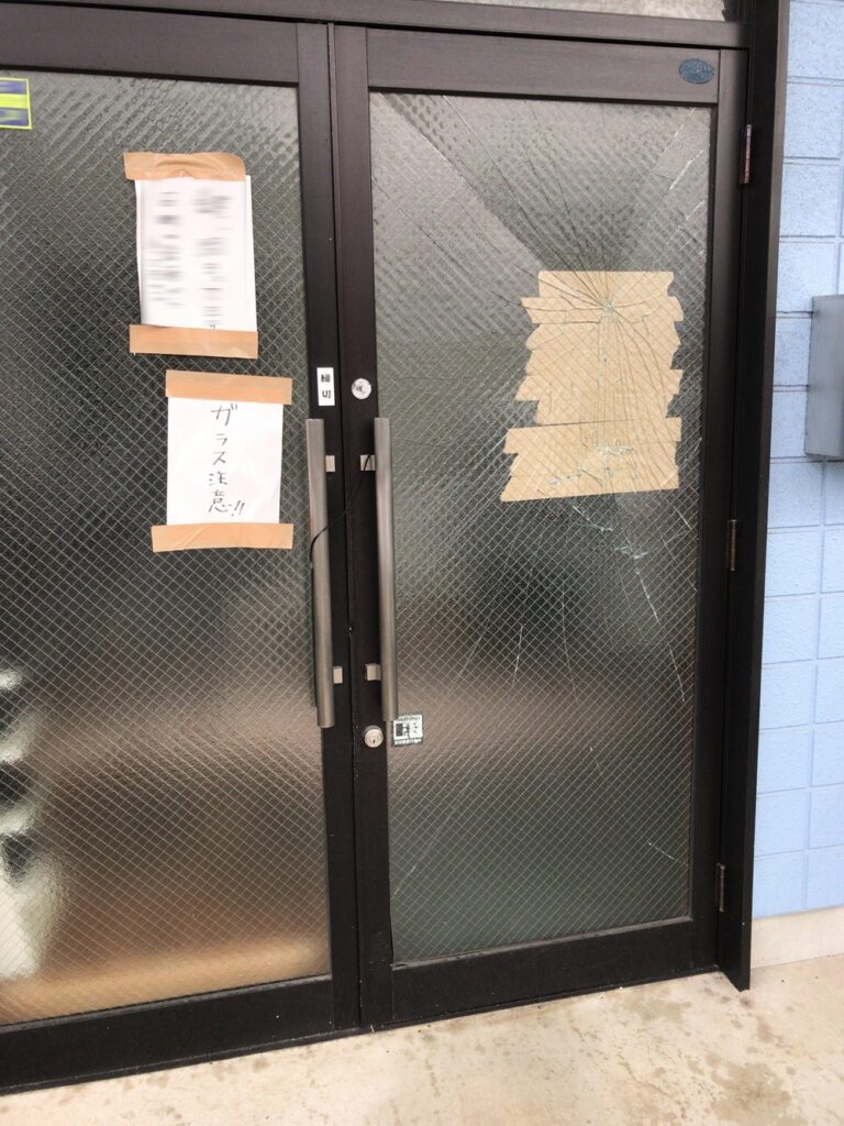 ガラス修理 2017年10月24日 最終更新日時 : 2026年1月24日 garasu110 修理・施工事例のカテゴリーガラス修理 弊社近隣のお客様よりガラス修理のご依頼を頂きました。こちらは台風によるガラス破損です。 網入り型ガラス6.8ミリ厚726ミリ×1795ミリ(1枚)コーキング施工