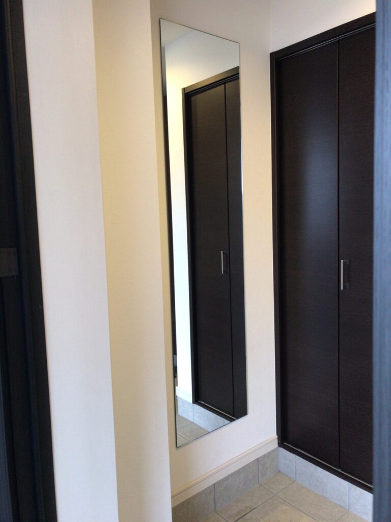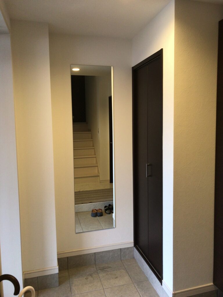 名古屋市千種区にお住いのお客様より、玄関ホールに姿見鏡取付けのご依頼をいただきました。
