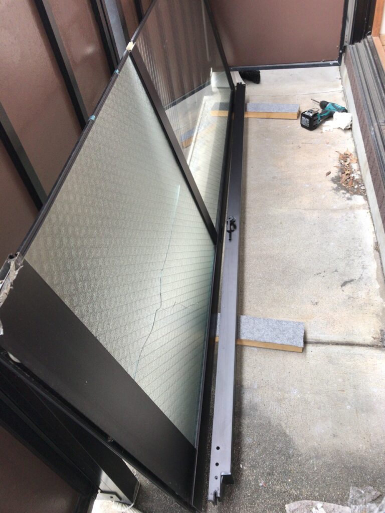掃出しサッシの下部ガラス修理